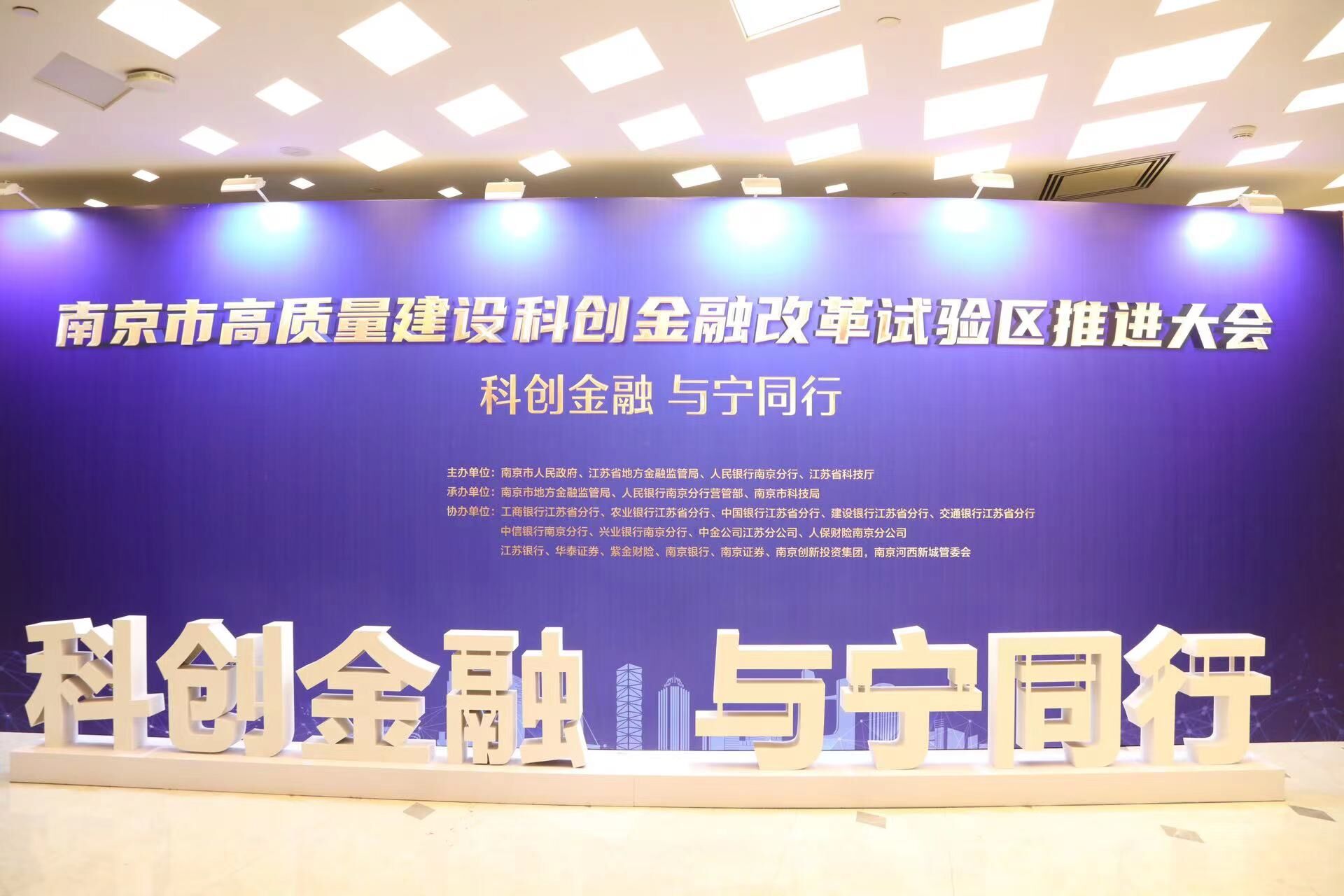 荔枝新闻讯 6月26日下午,主题为“科创金融 与宁同行”的高质量建设科创金融改革试验区推进大会在南京国际文化交流中心举办。大会由南京市人民政府会同江苏省地方金融监管局、人民银行南京分行、江苏省科技厅主办,南京市地方金融监管局、人民银行南京分行营管部、南京市科技局承办。