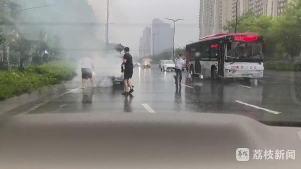 杨磊说,他当时下班路上开车时,看到前面一辆车的底盘冒烟,还有火星,他觉得情况不妙,立即追上车,并行,按喇叭示意提醒。杨磊说,当时帮忙灭火,他没有想太多。而且也得到了很多好心人的帮助:公交车提供了灭火器,还有一辆私家车也停下车提供了灭火器。
