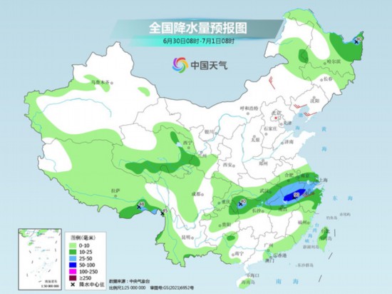 具体来看,中央气象台预计,今天,江苏大部、安徽大部、河南东南部、湖北大部、湖南北部、江西北部、浙江北部、重庆东部以及黑龙江北部、内蒙古东北部、广东东部沿海等地的部分地区有大到暴雨,其中,湖北东部等地局地有大暴雨(100~150毫米)。