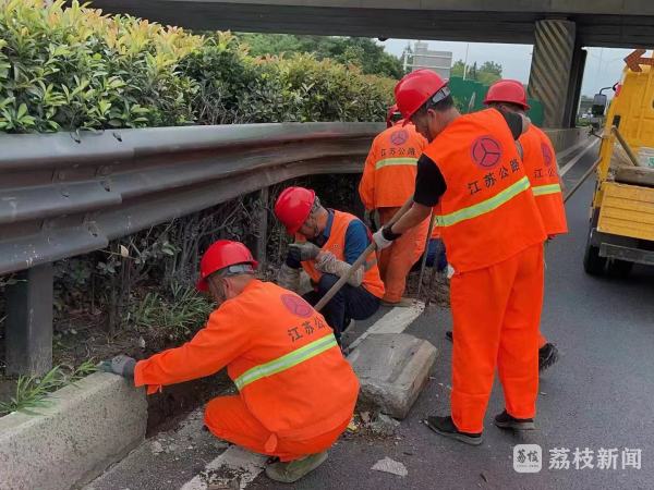 29日上午,江南一站养护人员针对易积水路段清理泄水孔、水渠,确保排水通畅。