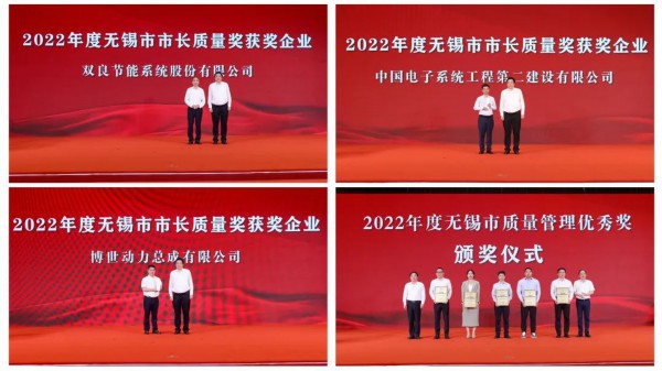 会上,2022年度省长质量奖获奖企业长电科技作为先进典型作了交流发言;双良节能系统股份有限公司、中国电子系统工程第二建设有限公司、博世动力总成有限公司3家企业被授予2022年度无锡市市长质量奖;江苏中超控股股份有限公司、无锡奥特维科技股份有限公司、无锡透平叶片有限公司、江苏华兰药用新材料股份有限公司、无锡湖滨饭店有限公司5家企业被授予2022年度无锡市质量管理优秀奖。会议揭晓了无锡市首届“十大质量工匠”,并为法尔胜泓昇集团有限公司首席质量官朱维军等“十大质量工匠”颁奖。