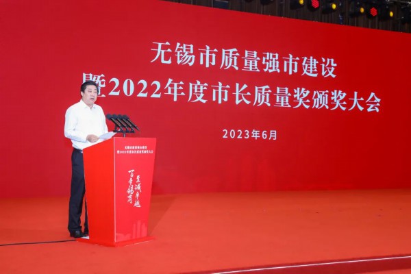 6月29日,无锡市质量强市建设暨2022年度市长质量奖颁奖大会举行,现场发布了2022年度市长质量奖和市质量管理优秀奖获奖企业、无锡市首届“十大质量工匠”名单。无锡市市长赵建军讲话并颁发市长质量奖,省市场监督管理局副局长孙沪兵出席会议并讲话。市领导曹佳中、周文栋、吴红星,市政府秘书长陈寿彬参加活动。