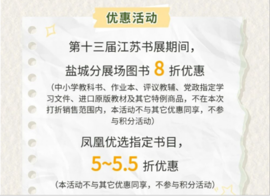 定位读者群众,引领阅读新风尚。本届书展盐城各分展场围绕“阅读的盛会 读者的节日”总定位,以惠民利民为目标,落实优惠政策。书展期间,各县市区新华书店分展场门店书籍八折销售;盐渎书城现金购书享受8折优惠,8折后可叠加使用图书抵用券;言+买书汇开展图书8.5折和充值优惠活动;东台海春书局全场图书满四送一、文具文创满三送一;江苏方轩文化(中韩文化客厅)全场图书8折/图书满200减50,还有诸多福利赠送,促进图书消费,引领读者阅读新风尚。