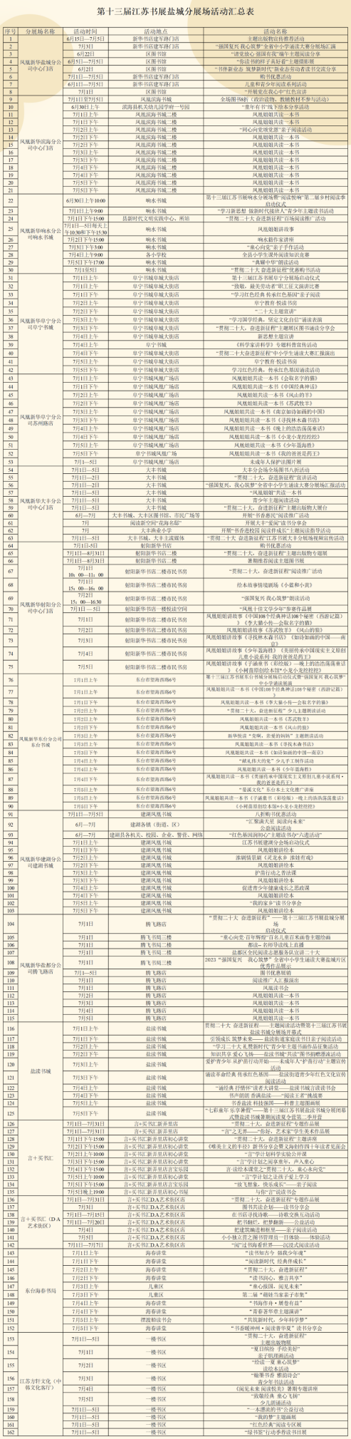 各分展场地址如下,我们期待与您在书展相遇,共享全民阅读盛会,共赴书香盐渎之约: