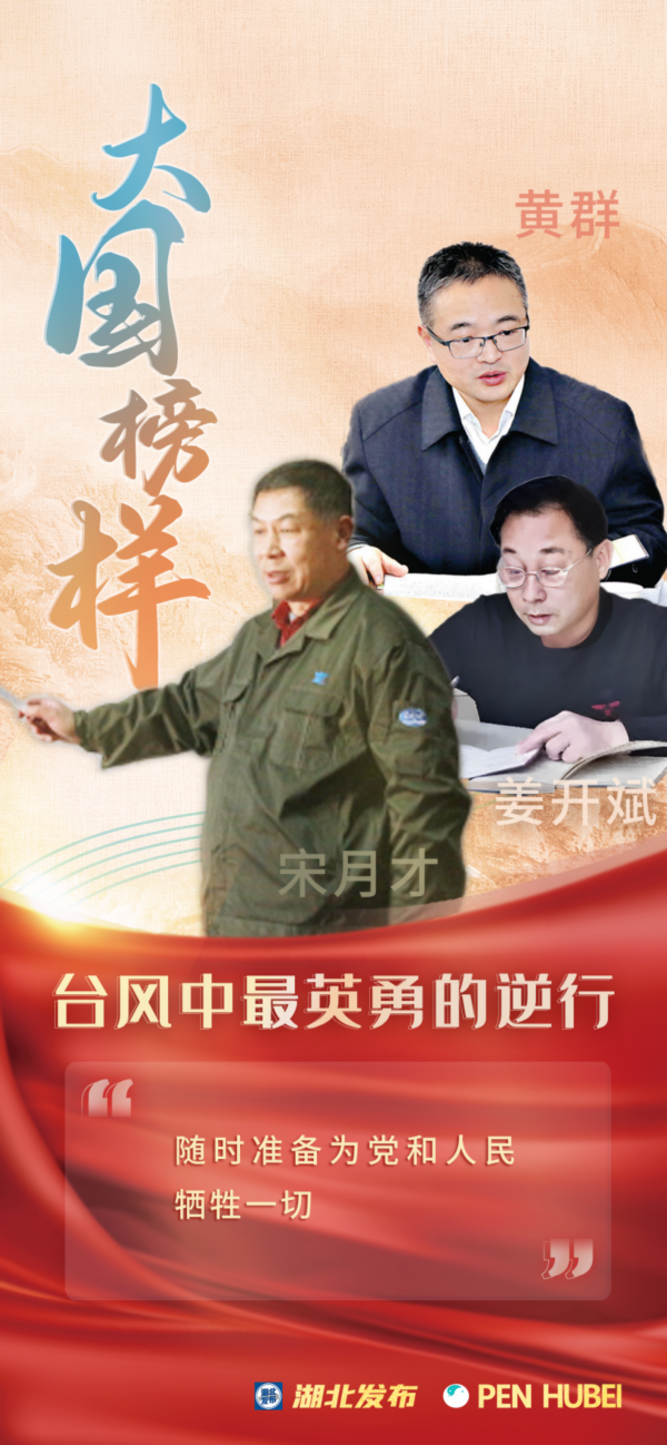 黄群、宋月才、姜开斌三位同志面对台风和巨浪,挺身而出、英勇无惧,为保护国家重点试验平台壮烈牺牲,用实际行动诠释了共产党员对党忠诚、恪尽职守、不怕牺牲的优秀品格,用宝贵生命践行了共产党员“随时准备为党和人民牺牲一切”的初心和誓言,他们是共产党员的优秀代表、时代楷模。