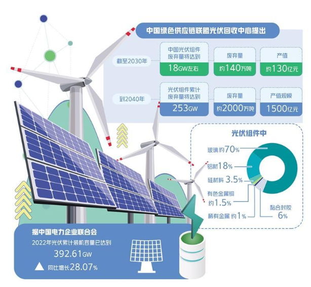 今年1月份,工信部等六部门发布《关于推动能源电子产业发展的指导意见》,进一步要求加快构建光伏供应链溯源体系,强调推动光伏组件回收利用技术研发及产业化应用。国家能源局近日发布的《<关于促进新时代新能源高质量发展的实施方案>案例解读》也提出,要大力推动退役风电机组、光伏组件回收处理技术和相关产业链发展。