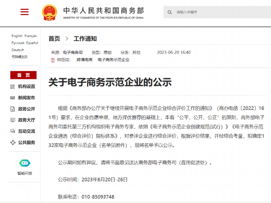 据了解,“电子商务示范企业”评选由商务部电子商务和信息化司组织,通过多维度的综合评价,旨在肯定促融合、促民生、促发展、促振兴、促环境、促开放等方面取得卓越成效的示范企业,充分发挥优秀电子商务企业在构建新发展格局中的示范引领作用,促进我国电子商务高质量发展。