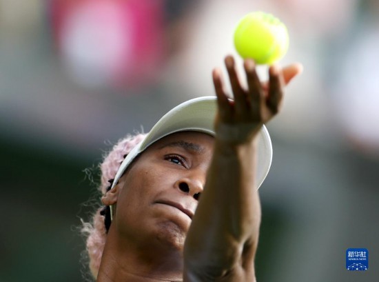 7月3日,维纳斯·威廉姆斯在比赛中发球。新华社记者 李颖 摄