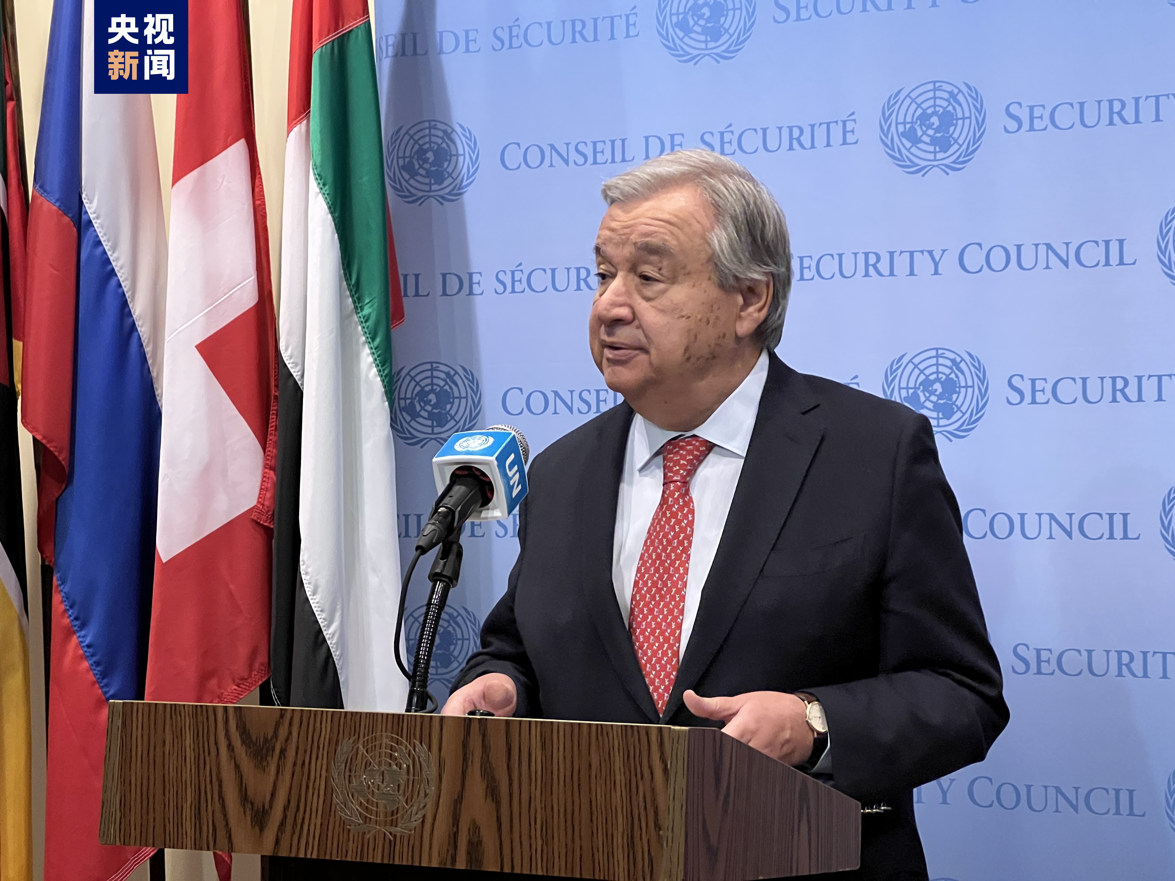当地时间7月6日,联合国秘书长古特雷斯在从海地返回后发表谈话。