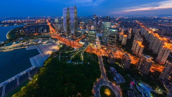 ▲无人机近日拍摄的苏州工业园区夜景。新华社记者 李博 摄