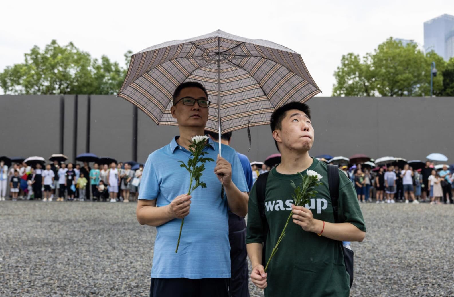 仪式开始后,观众自发停下脚步,在公祭广场整齐列队。