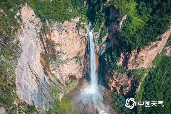 △云台天瀑飞流直下,十分壮观。(签约供稿人/视觉中国/版权图片 来源视觉中国)