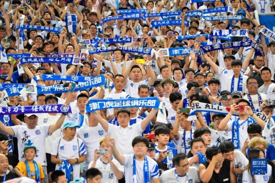 7月7日,天津津门虎队球迷为球队加油。新华社记者 孙凡越 摄
