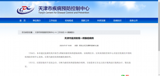 7月7日,天津市疾病预防控制中心发布公告,天津市确诊一例猴痘病例。近5天之内,天津、湖南长沙、辽宁沈阳等地已累计报告了5例猴痘确诊病例,其中,天津报告1例,湖南长沙报告3例,辽宁沈阳报告1例。据各地疾控中心披露,患者均情况稳定。