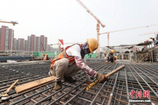 资料图:图为工人在加固钢筋。中新社记者 贾天勇 摄
