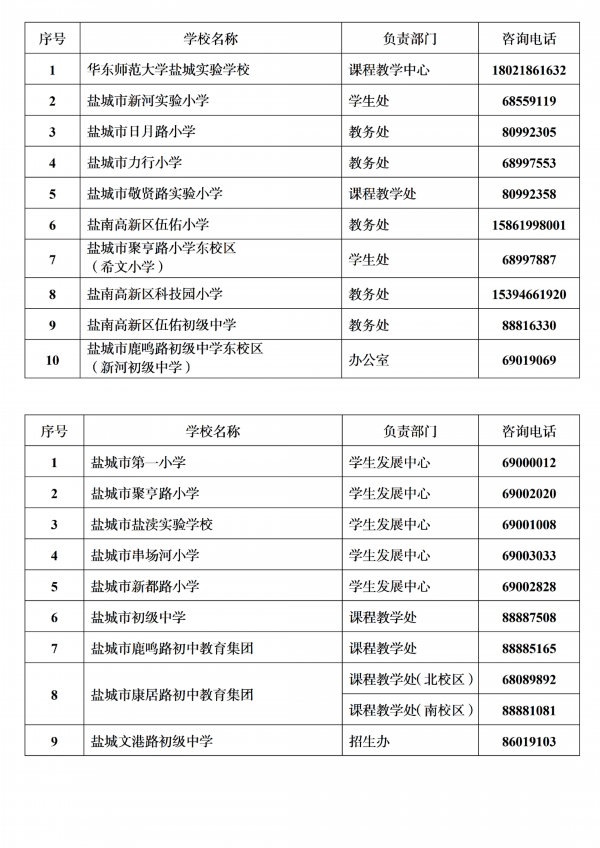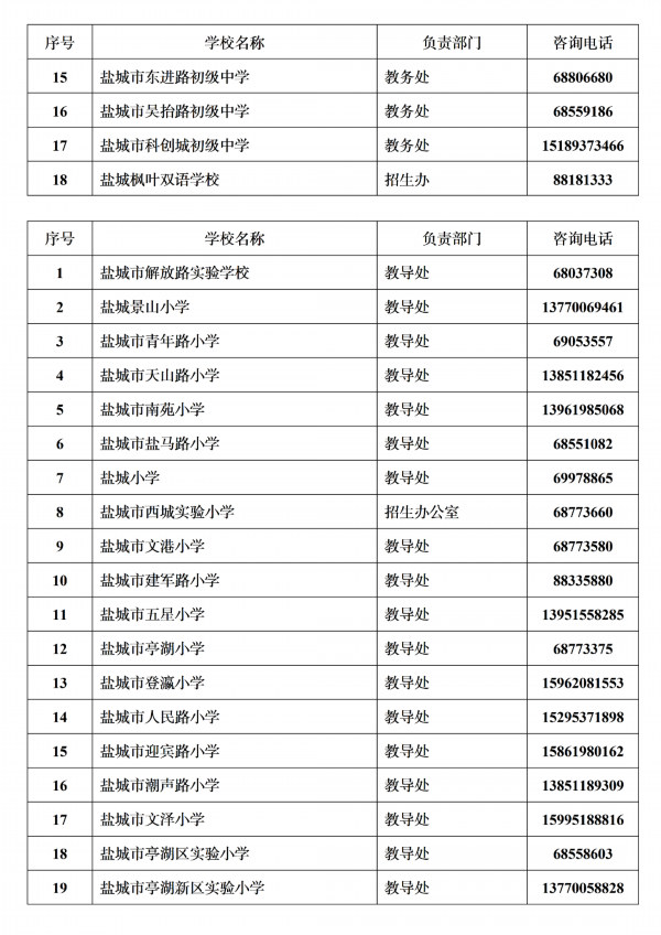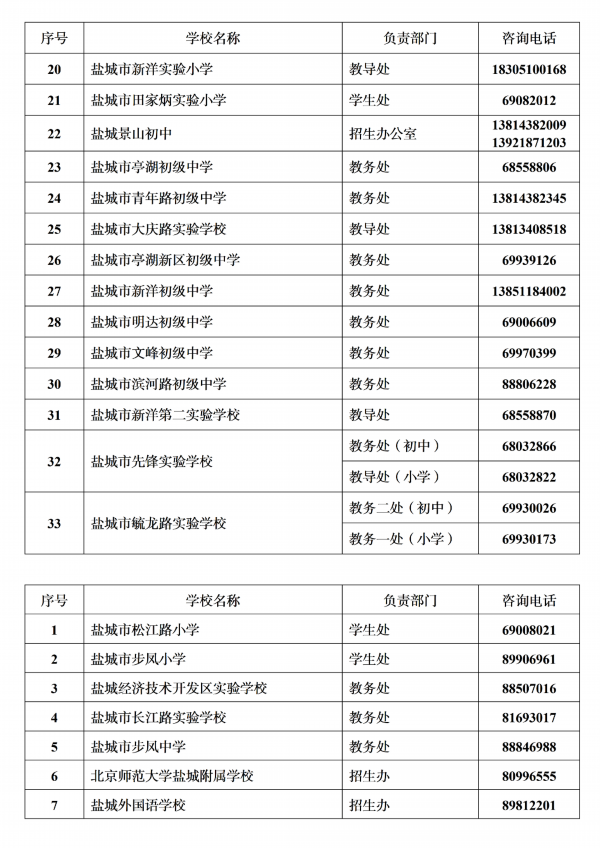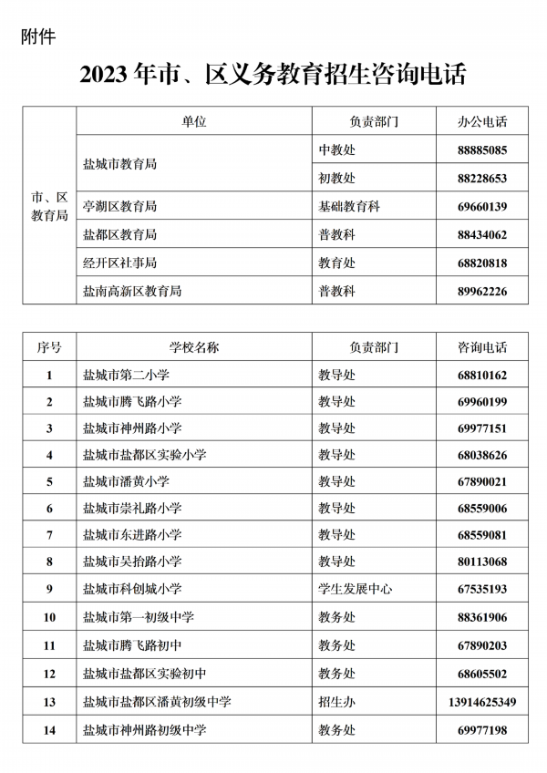 盐都区教育局招生咨询点:盐城市盐都区实验初中(盐城市盐都区开元路12号),咨询电话:88434062;