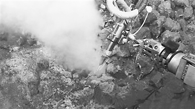 “发现”号水下缆控潜器开展激光拉曼综合原位探测。中国科学院海洋所供图