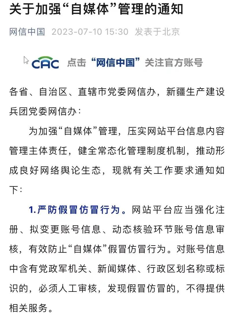 《关于加强“自媒体”管理的通知》(图源:网信中国)