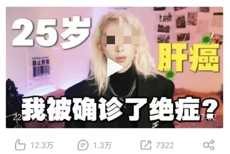 比如常见的“卖惨类”:前段时间,一则“到现在还想不通,为什么会被确诊肝癌”的视频冲上热搜。经查,该视频内容并非博主真实遭遇,而是幕后团队精心打造的“悲情套现牌”。