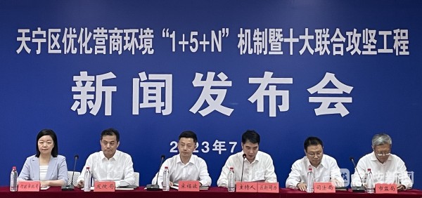 7月12日,常州市天宁区举行新闻发布会,建立营商环境“1+5+N”工作机制,同步实施十大联合攻坚工程,全面推进天宁营商环境再优化再升级,打造“政策最优、办事最快、成本最低、服务最好”的“四最”营商环境。