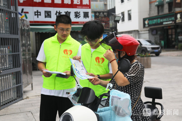 15名学生在城东派出所接受民警的反诈培训后,他们走进步行街,给步行街内店铺工作人员和来往行人递上反诈宣传册,面对面介绍常见的电信网络诈骗手段,并引导他们下载“国家反诈中心”App,深入了解反诈知识。随着暑期的来临,学生们纷纷拿起了手机,这也增加了他们被电信诈骗的可能,让学生们作为宣传员讲反诈,不仅能教会学生主动远离诈骗,同时还能发挥一个学生带动一个家庭的宣传辐射作用,提高周围人群的反诈意识。