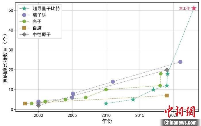 量子真纠缠态比特数目的发展历史。中国科大 供图