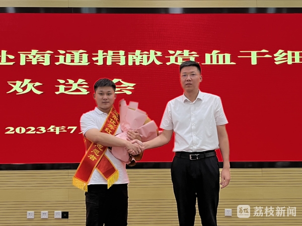 7月12日,南通市海门区红十字会为造血干细胞捐献者陈天羿举行欢送仪式,海门副区长邓阳参加活动。