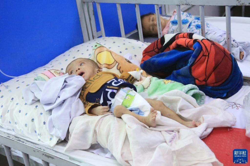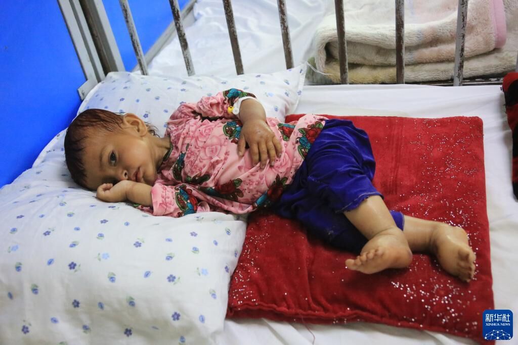 7月10日,营养不良患儿在阿富汗喀布尔英迪拉·甘地儿童健康研究所接受治疗。新华社发(塞夫拉赫曼·萨菲摄)