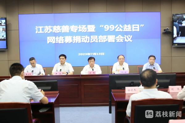 7月13日下午,江苏省民政厅、省慈善总会召开“爱心济困·善行江苏”2023年江苏慈善专场,暨“99公益日”慈善网络募捐动员部署会议,动员企业、社会组织和爱心人士参与慈善献爱心。