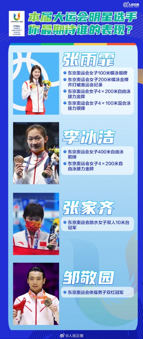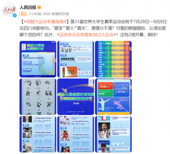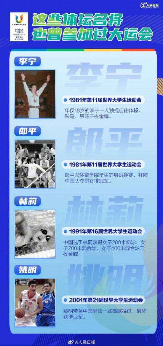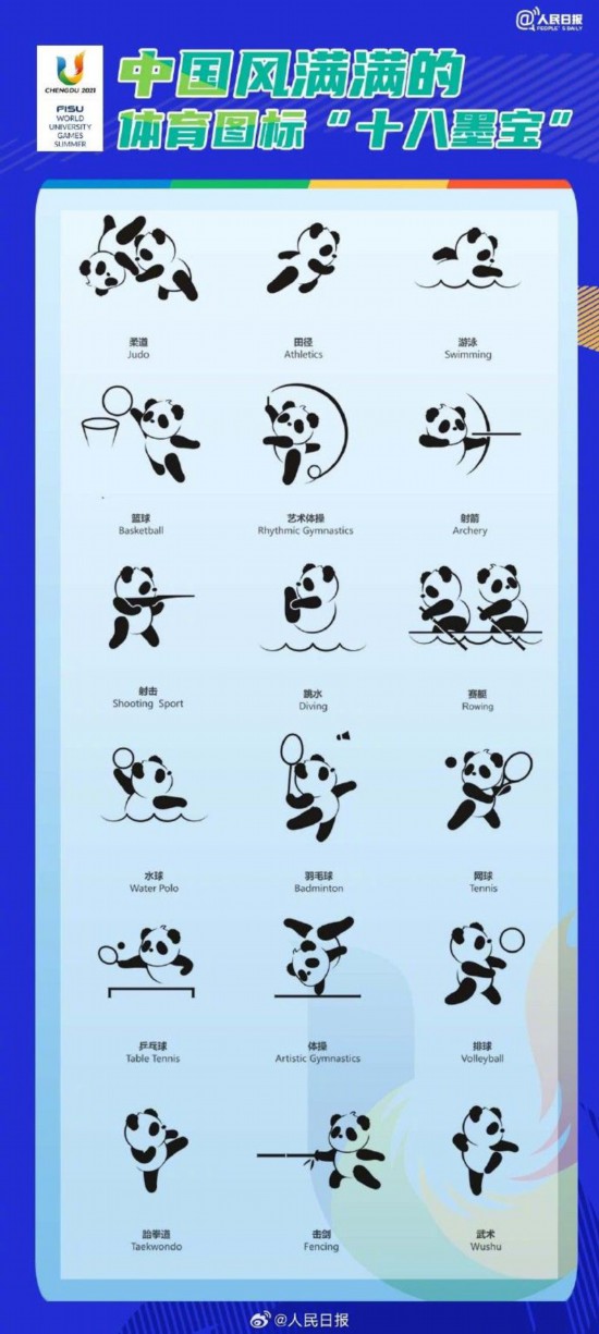 第31届世界大学生夏季运动会将于7月28日—8月8日在四川成都举办。“蓉宝”“蓉火”“蓉光”,傻傻分不清?可爱的熊猫图标,认得出是哪个项目吗?此外,这些体坛名将曾参加过大运会!还有2周开幕,期待!