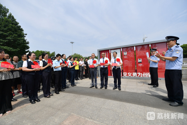 今年以来,南京市公安局建邺分局兴隆派出所辖区涌现了4起见义勇为行为,9名见义勇为当事人。为弘扬社会正能量,传承中华民族传统美德,营造辖区见义勇为浓厚氛围,昨天(7月12日),南京公安局建邺分局兴隆派出所在建邺区见义勇为广场对辖区内的见义勇为群众进行奖励。