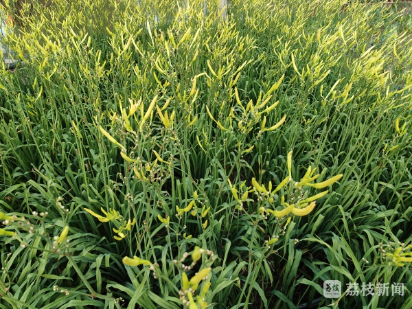 眼下到了黄花菜成熟期,在江苏扬中油坊镇老郎村的黄花菜基地上,金灿灿的黄花菜在阳光照耀下显得特别抢眼,一朵朵的花不仅好看,而且好吃。