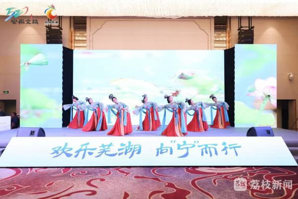 推介会上,一支融合芜湖水乡文化改编的舞蹈,展现了江南水乡芜湖夏日莲韵。穿插于各个环节之间的抽奖互动,为观众带来了芜湖铁画文创产品、方特景区门票、湾沚区民宿体验券等奖品,激动人心的抽奖活动将现场氛围推向高潮,同时也展现出芜湖广迎八方游客的热情。