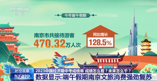接下来我们就以南京端午节为例,来感受古都南京文旅消费市场复苏的强劲势头。江苏文旅厅监测信息显示,今年端午假期,南京市共接待游客470.32万人次,同比增长128.5%;实现旅游总收入68.82亿元,同比增长132.6%;接待游客量名列江苏省首位,南京夫子庙-秦淮风光带、中山陵、玄武湖都是热门景区。