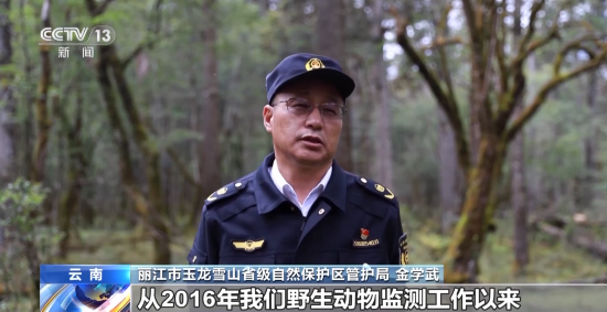 云南丽江市玉龙雪山省级自然保护区管护局 金学武:从2016年我们野生动物监测工作以来,我们先后监测到一级保护动物林麝、黄喉雉鹑,二级保护动物亚洲黑熊、赤狐、猕猴,总共监测到了15种国家重点野生动物。