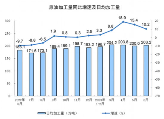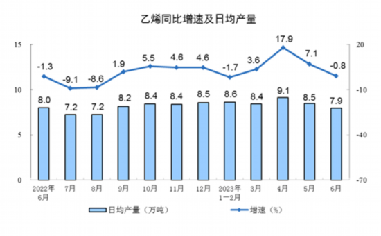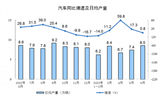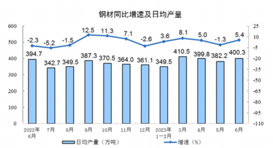 分产品看,上半年,620种产品中有331种产品产量同比增长。钢材67655万吨,同比增长4.4%;水泥95300万吨,增长1.3%;十种有色金属3638万吨,增长8.0%;乙烯1543万吨,增长3.8%;汽车1310.3万辆,增长6.1%,其中新能源汽车361.1万辆,增长35.0%;发电量41680亿千瓦时,增长3.8%;原油加工量36358万吨,增长9.9%。