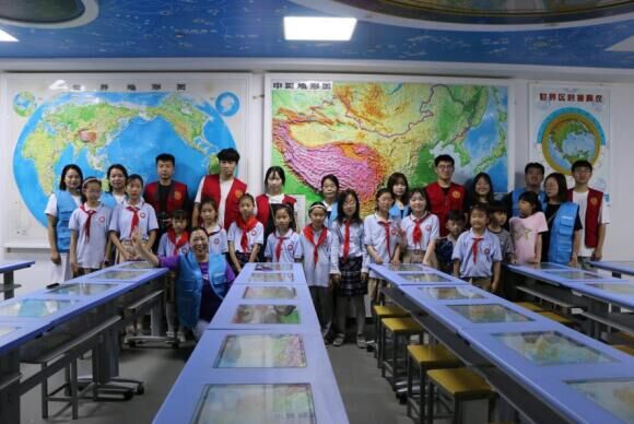 “老师,地动仪下面的大球有什么作用呀?”“老师,为什么地震是先上下晃动后左右晃动?”,一个个稚嫩的声音从地理教育基地传来。在地理教育基地,团队成员带领孩子们尽情体验地震风雨雷电等自然现象,学习领悟相关地震知识,参观地理基地大型版图和航空航天模型。通过实地感受、现场观影、5D模拟体验等形式,以寓教于乐方式,让孩子们了解地震产生的强大破坏力,增强防范地震灾害能力。
