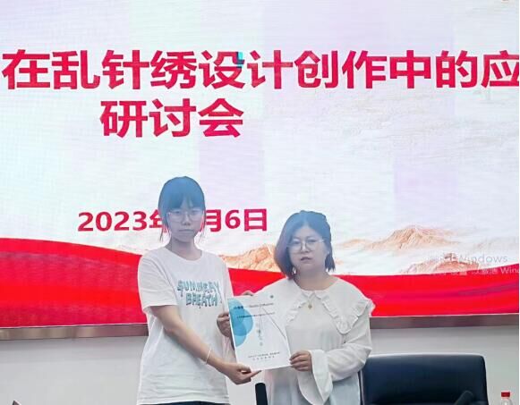 不仅如此,商学院“通草花”大学生实践团队改变传统产品单一形式,面向校园、社会开办通草花文创产品设计征集大赛,填充非遗数字文创产品数据库;“传承宝绣,数创未来”大学生实践团队应邀到鲁垛乱针绣非遗文化产业园参加“AI绘画技术在乱针绣设计创作中的应用研讨会”,在会上向乱针绣产业园捐赠AI人工智能辅助设计“宝典”,为乱针绣产品的设计、研发、生产等的推广提供助力。