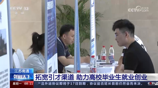 今天,央视《朝闻天下》栏目播出报道《江苏南通:拓宽引才渠道助力高校毕业生就业创业》。
