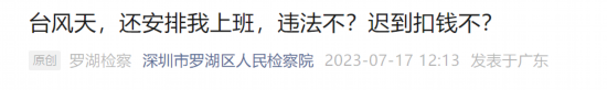 据悉,《广东省气象灾害防御条例》第20条规定,台风黄色、橙色、红色预警信号生效期间,除必需在岗的工作人员外,用人单位应当根据工作地点、工作性质、防灾避灾需要等情况安排工作人员推迟上班、提前下班或者停工,并为在岗工作人员以及因天气原因滞留单位的工作人员提供必要的避险措施。