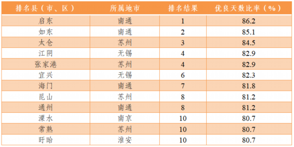 # 优良天数比率相对较好的前10位(1—10名)依次是: