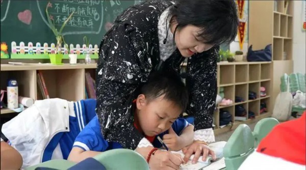 出生于1991年的朱文洁已有近十年的教学经验了,她曾在安徽滁州和江苏淮安工作,2019年才来到车站小学。从初中转向小学,对于朱文洁来说是挑战,“给一年级的小朋友上课,他们完全听不懂我说的话”。面对瞪着眼睛不知所措的小朋友,朱文洁内心疑惑,是不是自己的教学方法有问题?