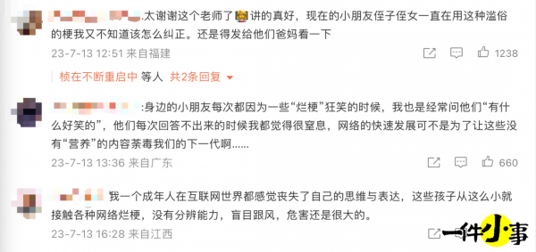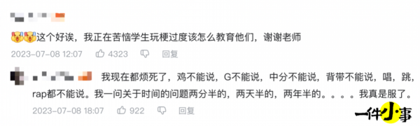视频一发出迅速引发了网友共鸣,很多人都表示,身边的小孩越来越爱说“烂梗”,“这位老师正视了这个问题,没有因为学生年纪小,就觉得可以不跟他们讲道理,尊重并理解学生,太会教了!”