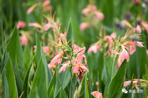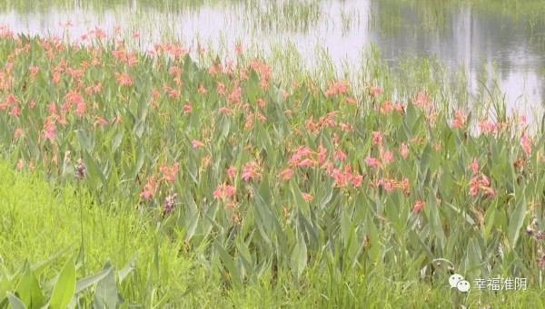 徐溜镇兴旺村水生态修复植物培育基地里,多种水生态作物郁郁葱葱,生机勃勃,美人蕉悄然盛放,翠绿的蕉叶和粉红的花朵,驱散了夏日的燥热。