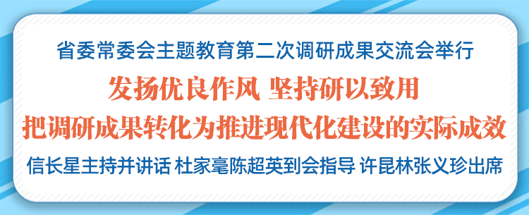 荔枝新闻讯 按照主题教育工作安排,7月19日上午,省委常委会主题教育第二次调研成果交流会举行。省委书记信长星主持会议并讲话。中央第六指导组组长杜家毫、副组长陈超英到会指导。省长许昆林、省政协主席张义珍出席。