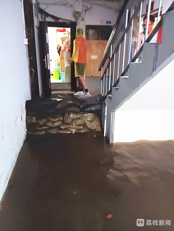 走进富贵山小区,小区内一片汪洋,全是积水。小区门口抽水泵加大马力,不停往外排。再往里走,小区积水有30-40厘米深,多栋小区被淹,进出楼梯口用沙袋挡起防洪墙。多家一楼住户家进水,生活用品泡在水中。街道城管、小区物业保安积极抢险排涝,帮助被淹住户运沙袋挡水。 随着雨越来越大,水不停上涨,小区物业报警求助,请车主立即移车,此举暧心。