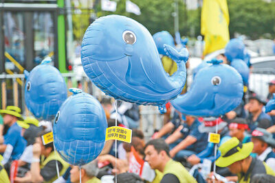 韩国市民团体“阻止日本放射性污染水排海全国行动”近日举行大规模集会。人们手持鲸鱼模样的蓝色气球,举着“反对排放放射性核污染水”等标语,对日本政府不顾邻国及国际社会反对执意推进核污染水排海计划表示愤怒。