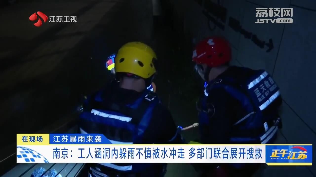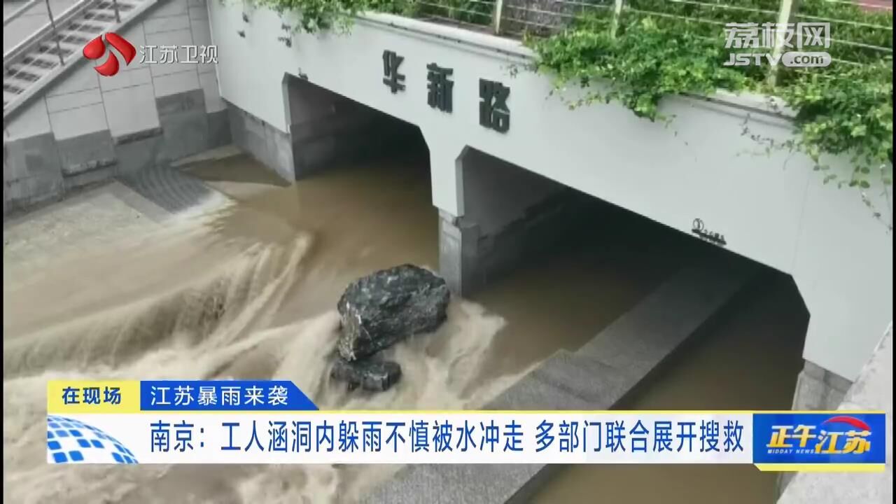 7月19日下午,南京突降暴雨,正在雨花台区西善桥街道从事绿化施工的几名工人到附近的涵洞口躲雨,一同前往躲雨的还有三名环卫工人。随着降雨持续,涵洞内积水迅速上升,其中一名66岁的女工人不慎被大水冲走。得知消息之后,当地消防、公安、城管等部门,以及蓝天救援队近150人赶赴现场搜救,搜救工作一直持续到凌晨。