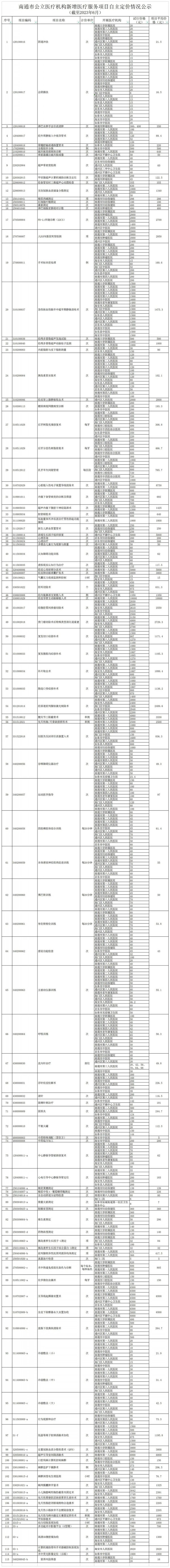 7月18日,南通市医疗保障局发布《南通市公立医疗机构新增医疗服务项目自主定价情况公示(截至2023年6月)》。