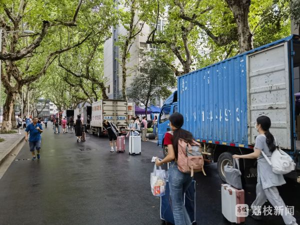 南京大学文学院本科学生周碧雯说:“之前还担心自己这么多行李,女生搬的东西又少,不知道能不能搬的完,发现根本就不要顾虑这些。到了这里,学长学姐已经帮我们把行李搬上去了,非常幸福,特别周到,非常感动。”